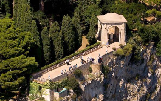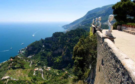 In the 13th century the  Villa Rufolo was built for the richest family of Ravello, famous for its somptuous gardens,especially the promontory garden decorated with fragrant blossoms that was once beloved by Wagner and is now the site of the famous Ravello music festival.The most salient point of the spur on which it stands ravello is the belvedere of  Villa Cimbrone,that occupies the most gobsmacking position on the entire Amalfi coast,with lush gardens, fountains, temples.