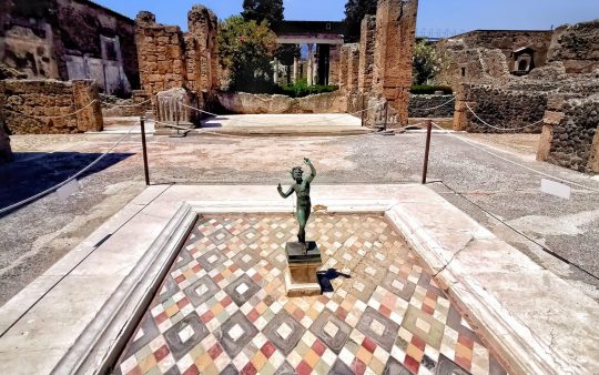 According to ancient tradition, Pompeii was founded by the Osci in the 8th century BC, the city,in a dominant position on the coast near the Sarno River and an axcellent landing site for navigators, came under Roman hegemony, keeping its own institutions, its own language and finally its own autonomy. In a few years, it became a classic residential center, inhabited by noble families who brought with them their wealth from agricultural production (famous was the wine of Pompeii).